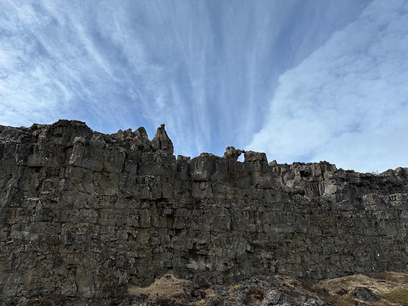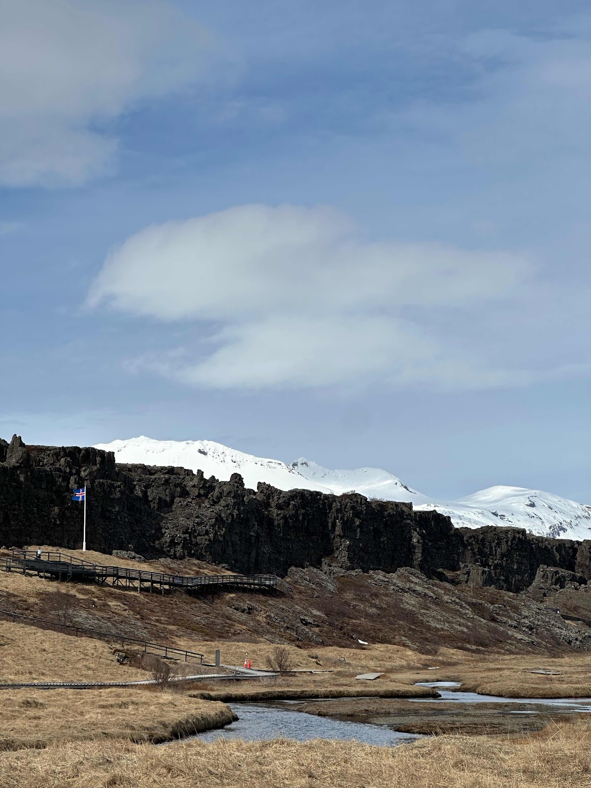 Our last stop might have been the coolest, it was the continental divide where the tectonic plates of North America and Europe meet. There is a pretty large piece of land that seems like a valley because of the elevation change. It’s a no mans land that is between both of the tectonic plates and was a valley where the first Icelandic parliament was held. You can see all these fissures that remind me of the end of Indiana Jones and the Last Crusade. Called Thingvellir, the area is protected by mountains on all sides and there is also a lake there that has crystal clear fresh water (with visibility of 150m!). That made it appealing to the Vikings for their commons (think real life renaissance faire) and capital in 930. It was later moved to Raykjavik because that actually had a better location and less wind.
