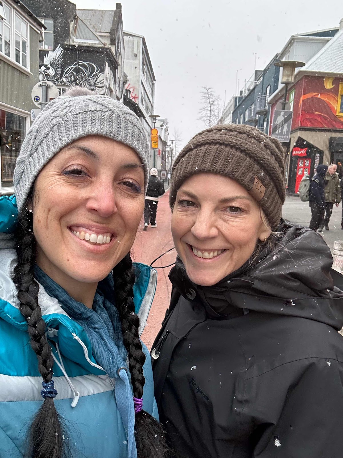 Our trip hope ended with a little more shopping through a snowy downtown and then we got a quick bite. Our trip to the Blue Lagoon got canceled because of the erupting volcano Sundhnukagigar. Apparently there are noxious gases from the eruption that are making them close the lagoon. So we will be going to Sky Lagoon which is right outside the City for some sort of authentic Icelandic bathhouse experience. But for now, sleep please!
